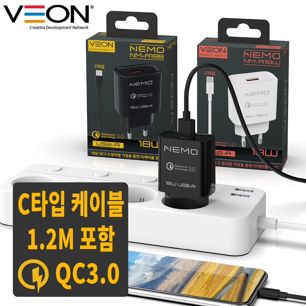 »óǰ¸í (Àμ⠹«·á À̺¥Æ®)[º£¿Â] ³×¸ð QC3.0 ºÐ¸®Çü °¡Á¤¿ë ÃæÀü±â 1P (CŸÀÔ 1.2M ÄÉÀ̺íÆ÷ÇÔ)