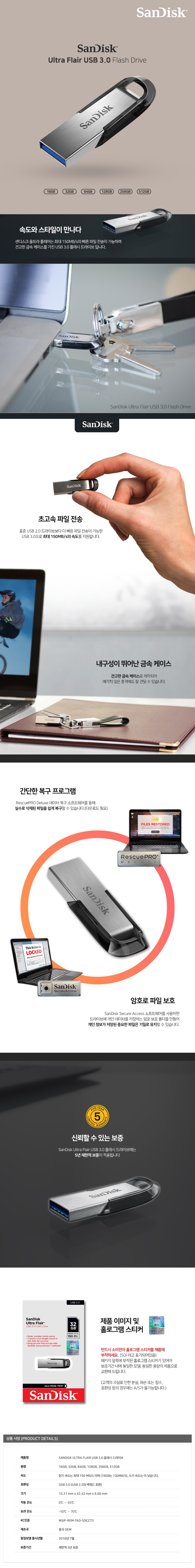 [ũ] SDCZ73 ULTRA FLAIR USB޸ 3.0 (16GB~512GB) 1P